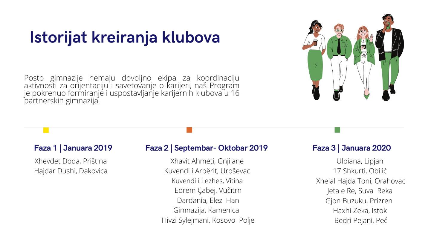 Tokom školske godine 2020-2021 angažovano je oko 200 učenika u okviru karijernih klubova iz 16 partnerskih gimnazija.