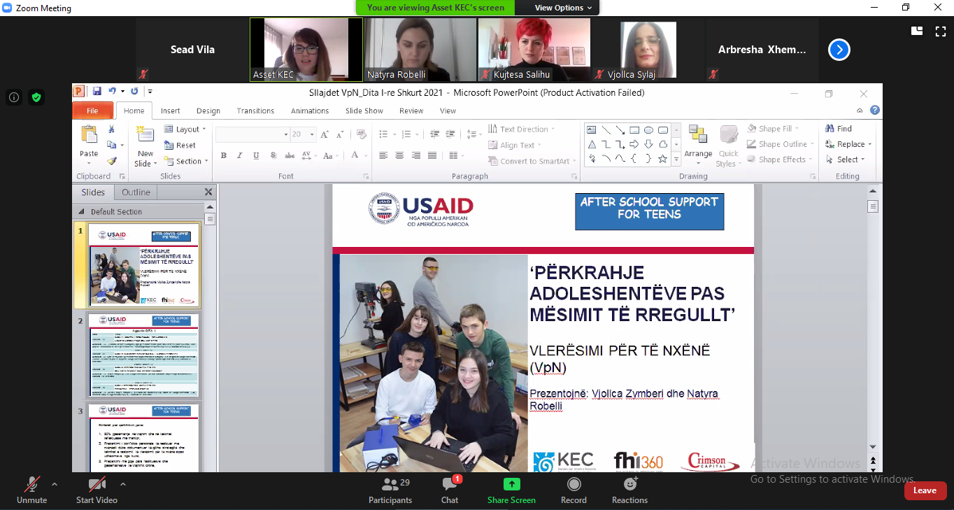 In conclusion, AfL can not only solve many teaching challenges, but also provide students with tools to help them learn better, enable better performance, and develop the skills for life. The “After School Support for Teens” Program is funded by USAID and implemented by Kosovo Education Centre (KEC) in partnership with FHI360 and Crimson Capital Corp.