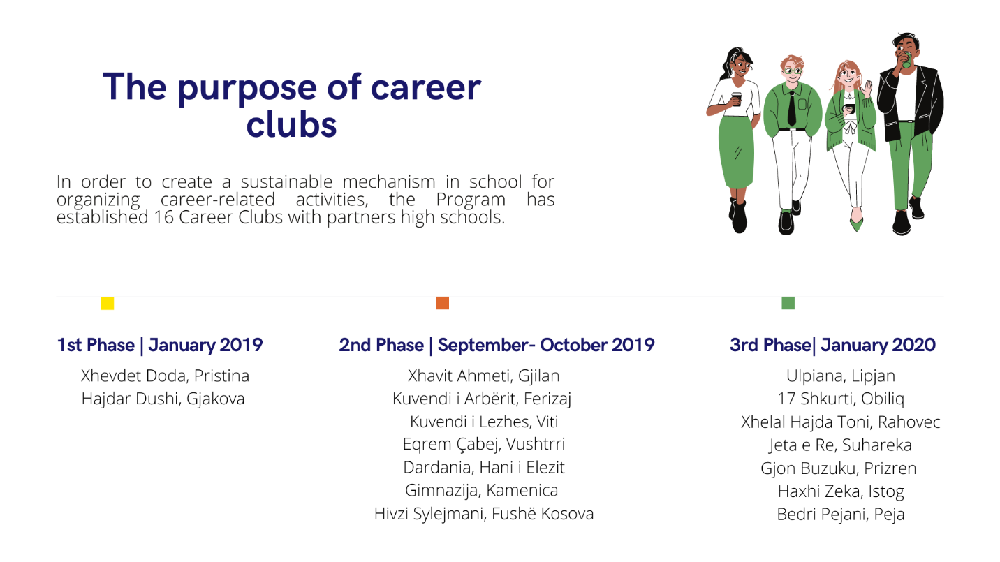 "The career club plays a very prominent role in our daily lives. We acquire valuable knowledge and skills that help us choose the right profession for us, by knowing our values, interests and benefits from the profession. The club also helps us to develop our skills for time management, determination, etc.", says Erma Shkurti, Head of the Career Club at the "Gjon Buzuku" Gymnasium-Prizren.